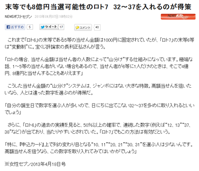 前回のデータを調べたところ、(過去25回の数字のトップ10と、その数字と相性の良い数字をピックアップ)9個中7個当たっていました(本数字7+ボナース2)。