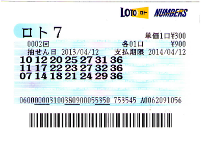 T(自分)は、前回の数字がロト6とロト7で、2個重複していたので、ロト7を決めてから1つ取る事にしました。