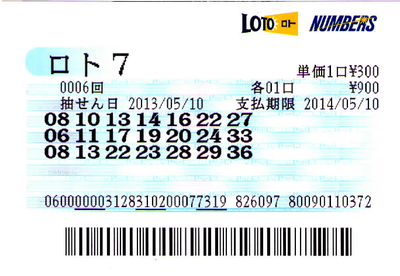 第6回ロト7購入しました