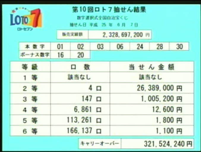 キャリーオーバー3億2,154万4,240円です。
