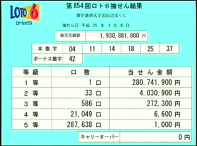 << 第53回ロト7速報   HOME   第853回ロト6速報 >>