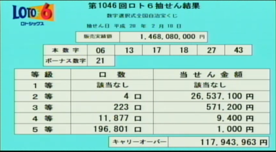 第1045回ロト6当選速報 >>