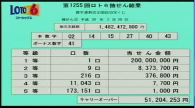 << 第1256回ロト6当選速報