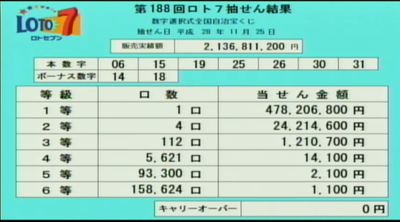 第188回ロト7当選速報