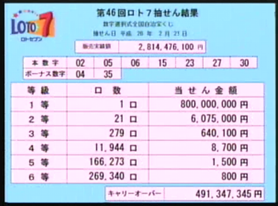 しかも1本なのでまだ5億近く来週にキャリーオーバーです。