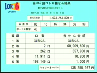<< 第57回ロト7速報   HOME   第861回ロト6速報 >>