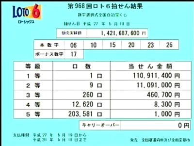 << 第969回ロト6当選番号