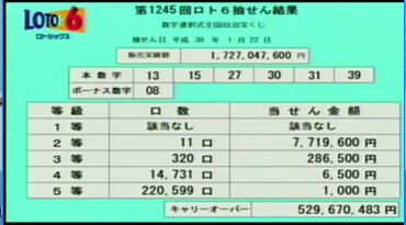 第1245回ロト6当選速報