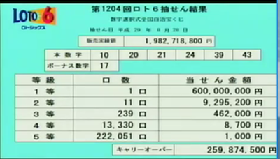 一等出ましたがキャリーオーバー残りました