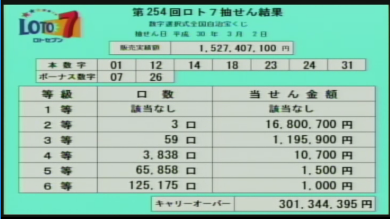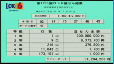 因みに今回一番当たったのが本数字2個と惨敗でした。