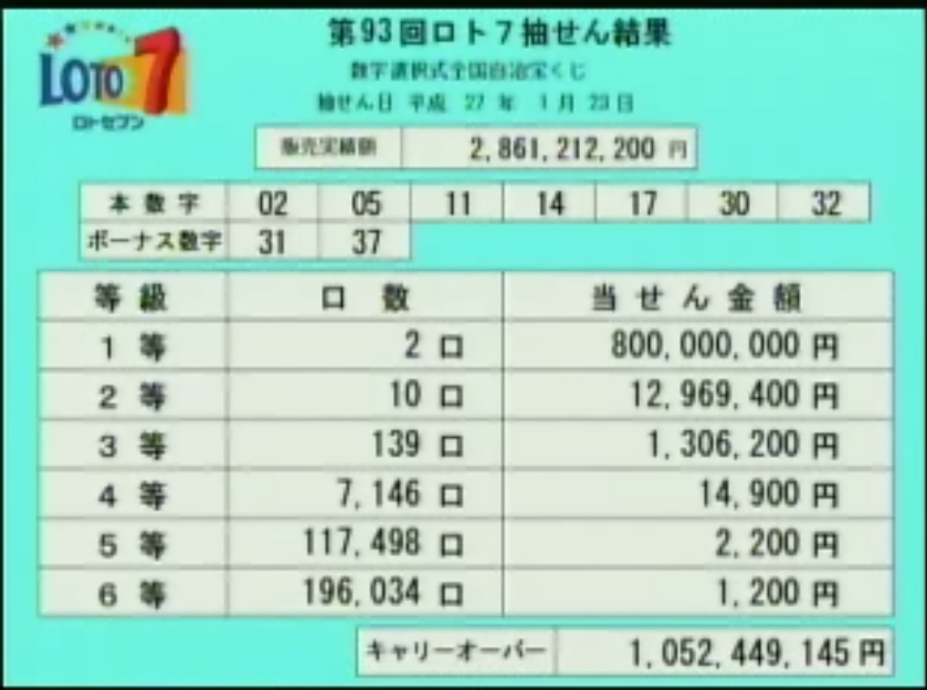 先週8億が出ましたが、まだまだキャリーオーバーは減ってません