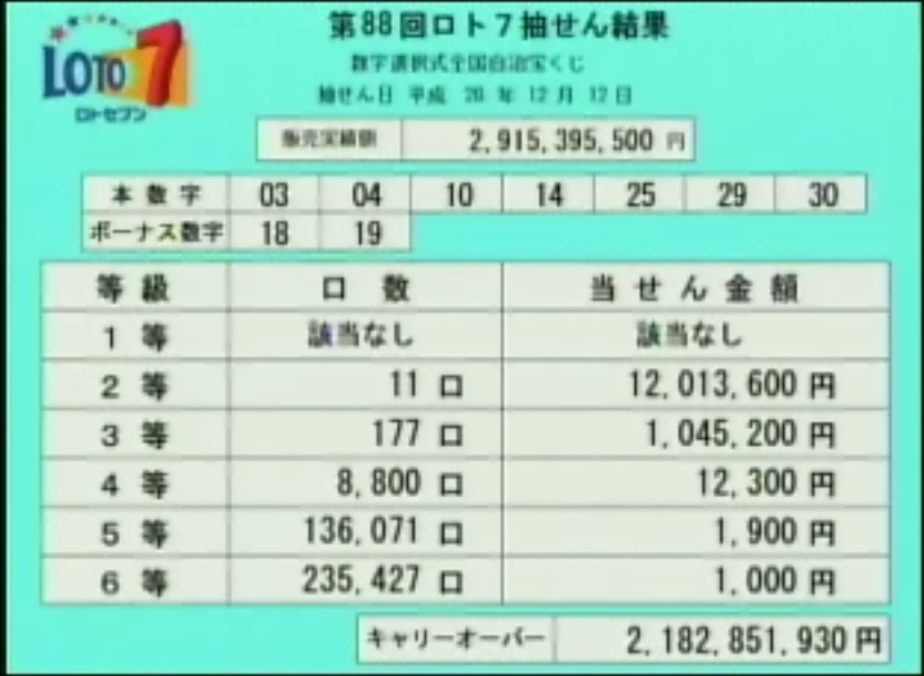 第88回ロト7速報です