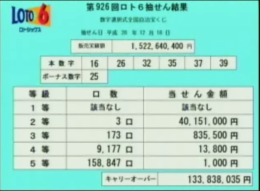 第926回ロト6当選速報