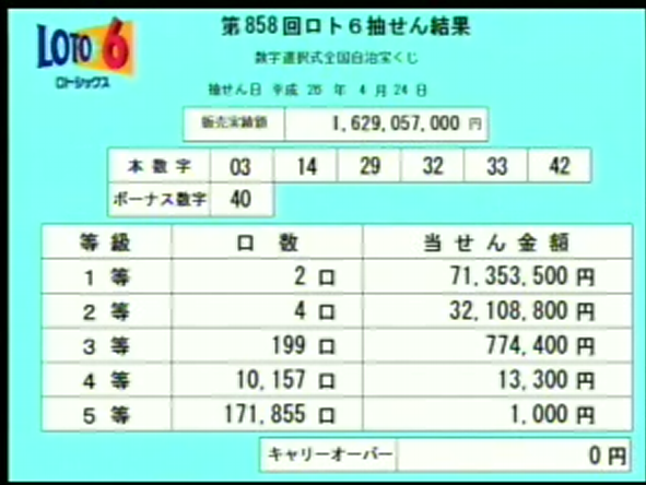 第858回ロト6速報