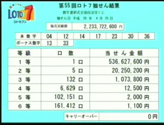 第55回ロト7速報です