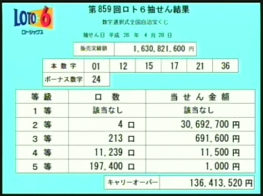 ロト6の速報です。