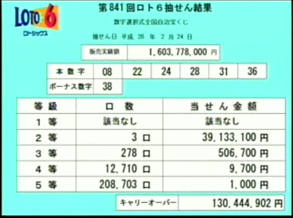 ちなみに本日のロト6結果は