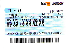 最終的に絞る前の数字から5つの本数字とボーナス2個が当っていてそこから選んで本数字1個と言う勘の悪さ。_| ̄|〇