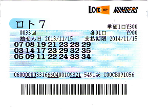 これらのデーターから次回のロト7の数字は