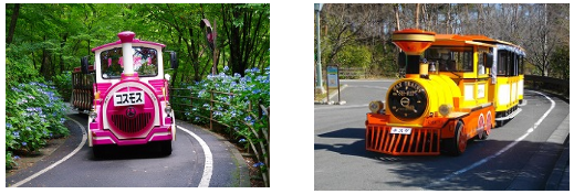 ↑みかも山公園では、コスモス号、キスゲ号、カタクリ号、アジサイ号の4台のフラワートレインが皆様を園内にお連れしています。