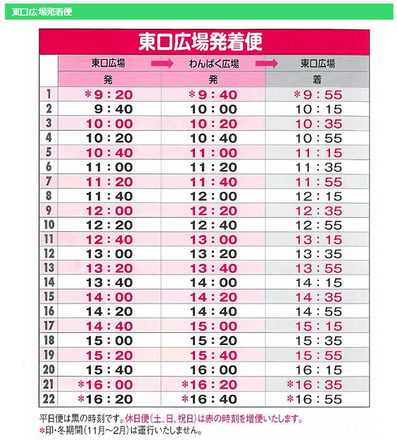 かなり広い園内ですが、機関車型の巡回バスが走っています。