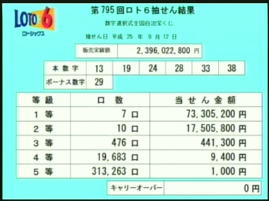 今週はロト6が連続キャリーオーバーの為、繰越金が318,626,275円