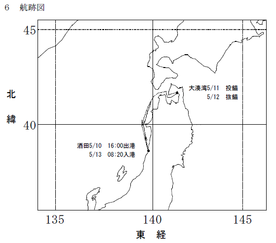 1次航海 航海の名称日本海沿岸航海 青森の大湊湾までの往復