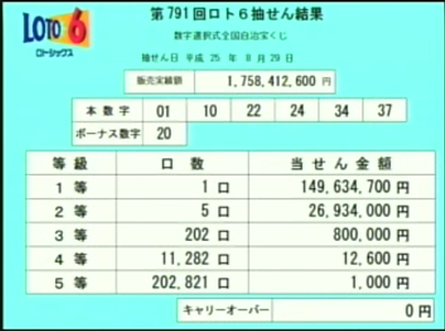 前回1等は出たもののまだ9千5百万円のキャリーオーバーです