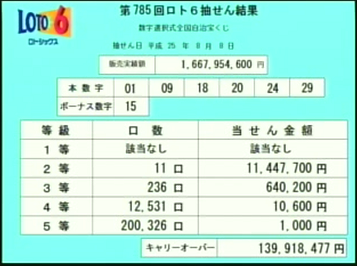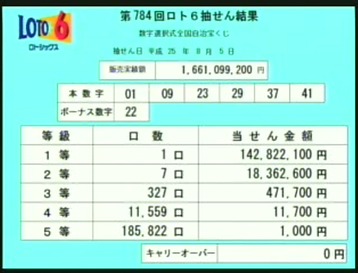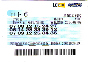 それから今週月曜日の第784ロト6速報で書いた「1は続く」