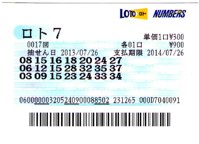 第17回ロト7購入して来ました。