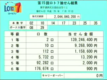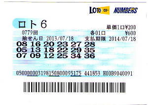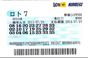 最終チェック前の数字は13個、その後勘で(ロト7データで0回の数字をカットした後)7個に絞ったのですが、勘が働かず本数字1個とボーナス1個でした