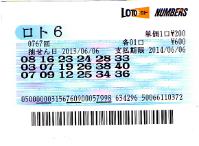 この記事を見て、今回ロト6が3億円キャリーオーバーなので挑戦する事になりました