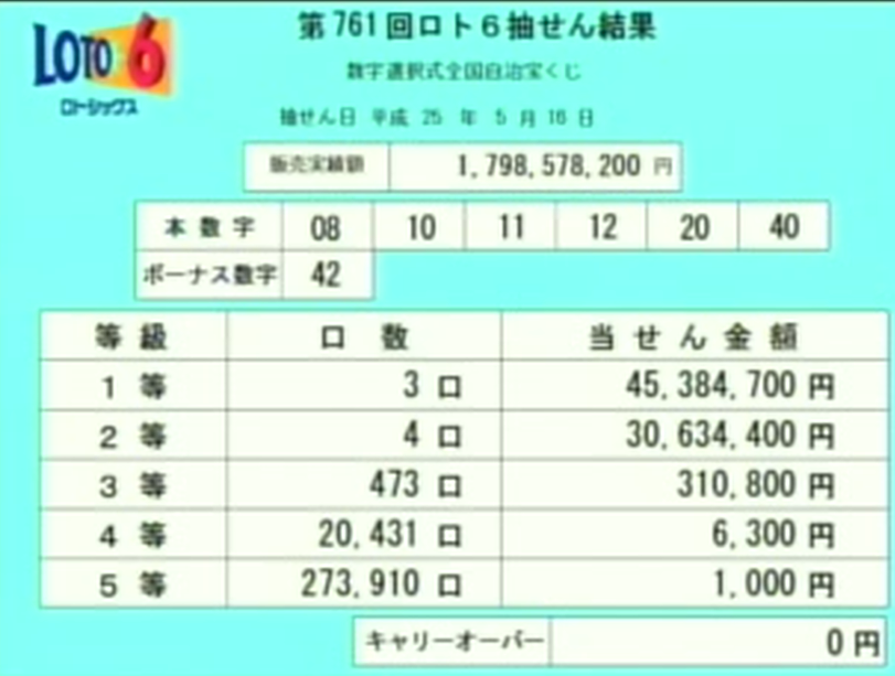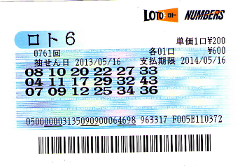 ちなみに一等は又も無しでキャリーオーバー19億