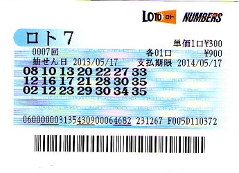 ちなみにロト7は、第一回に1等が出たきりズ~~~~~ト キャリーオーバーです。