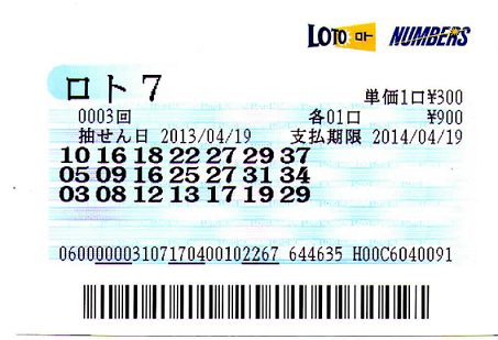 2013.4.12 ロト7結果