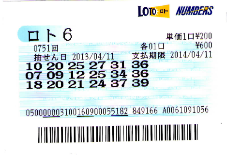 2.前日発表のロト6も1口ずつ買う