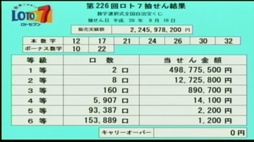 第226回ロト7当選速報