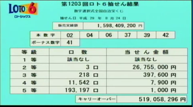 第1203回ロト6当選速報
