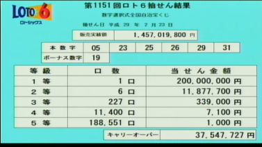 第1153回ロト6当選速報