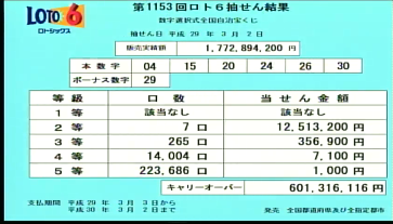 午後7時からロト6の速報をします