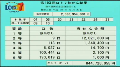 第193回ロト7当選速報