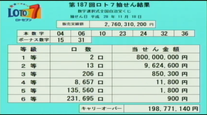 第187回ロト7当選速報