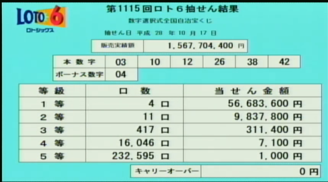 第1115回ロト6当選速報