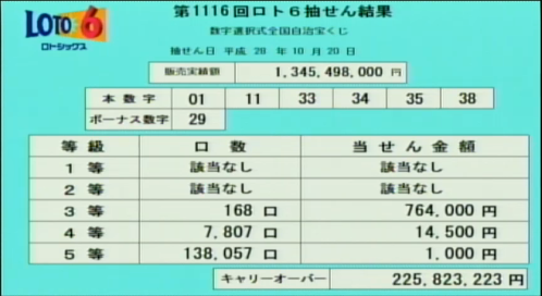 第1116回ロト6当選速報