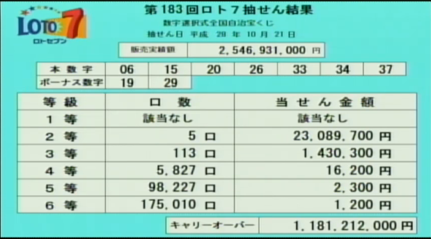 第183回ロト7当選速報