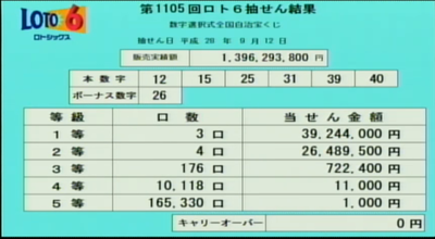 第1105回ロト6当選速報