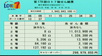 第178回ロト7当選速報
