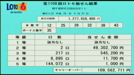 午後7時からロト6の速報をします
