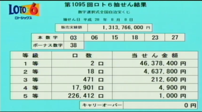 第1095回ロト6当選速報