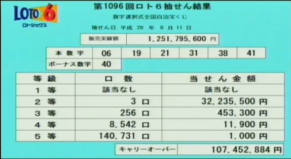 第1096回ロト6当選速報